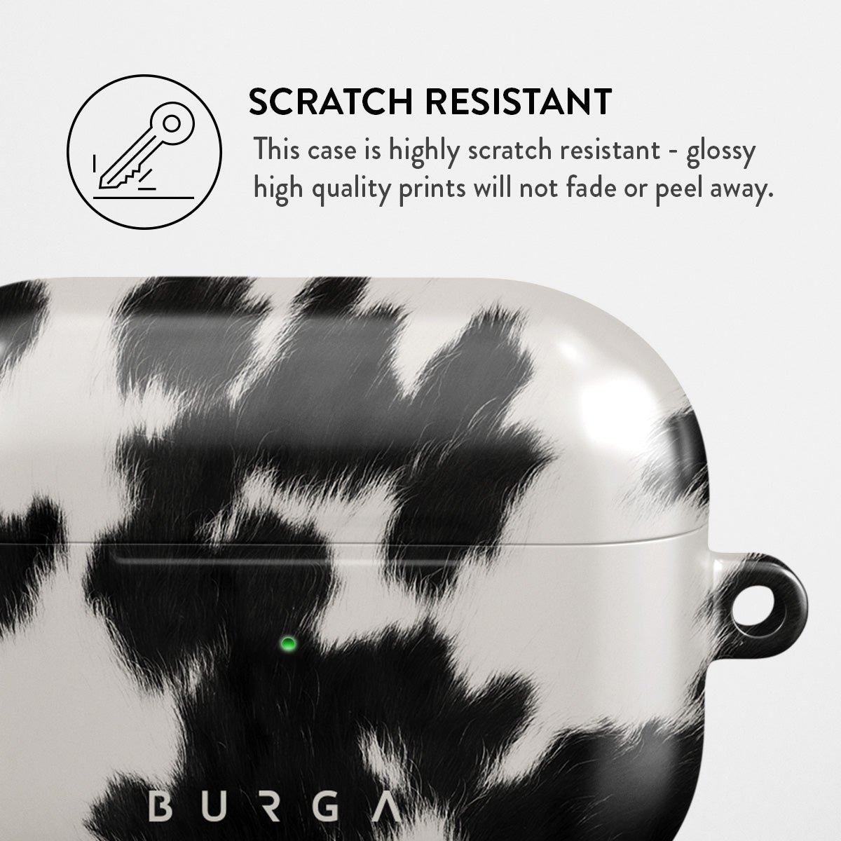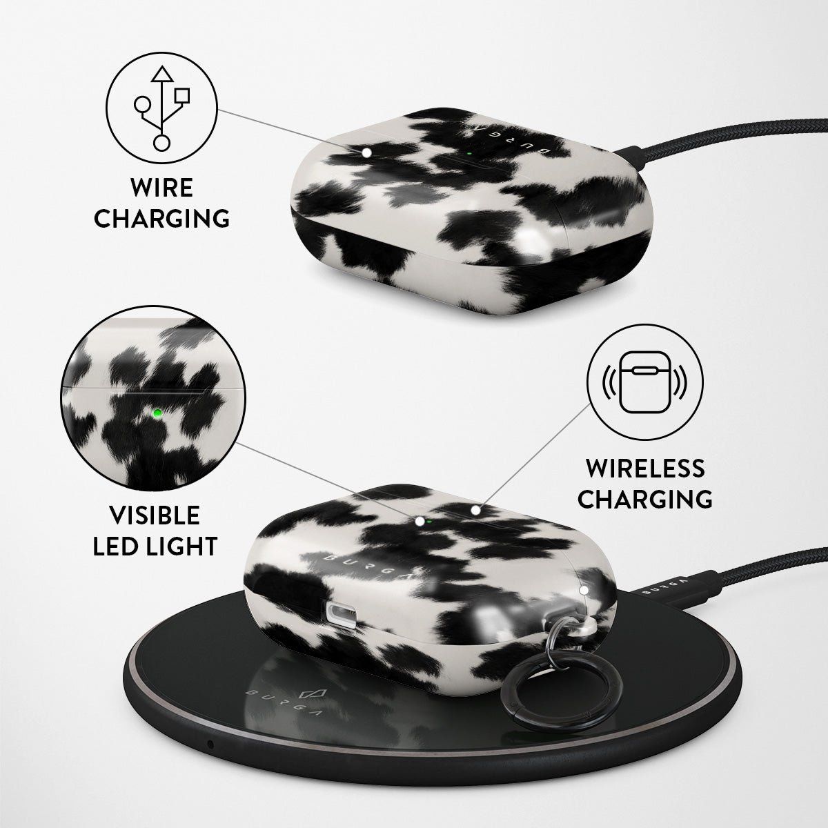 Your Airpods deserves to look cute and stay protected at all times. and our Achromatic Apple Airpods Pro case cover will help you keep it safe and sound. The cow print in black and white is both daring and classic. making it the perfect addition to your accessory collection.